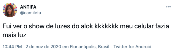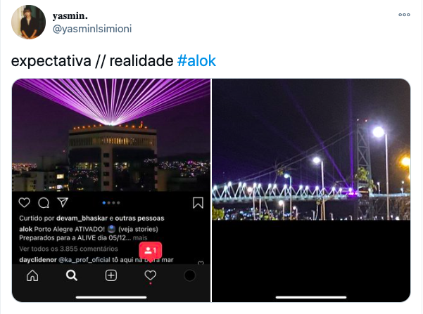 Internautas no Twitter brincaram com a decepção de assistir a projeção que deveria iluminar o céu de Florianópolis, mas não deu muito certo – Foto: Reprodução/Twitter/ND