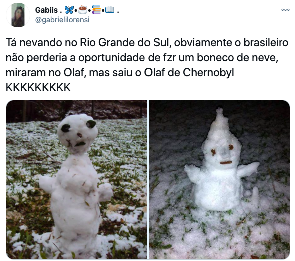 O apelido “Olaf de Taubaté”, que faz referência ao personagem da animação “Frozen” e ao meme da grávida de Taubaté também ganhou força em agosto, após o registro da neve na Serra catarinense, em agosto deste ano. – Foto: Reprodução/Twitter/ND - 4 de 8