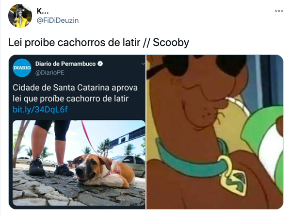 Um projeto de lei que previa multa para barulhos de animais, como latidos de cães, foi aprovado pelos vereadores de Penha, no Litoral de Santa Catarina, e acabou virando meme.- Foto: Reprodução/Twitter/ND - 6 de 8
