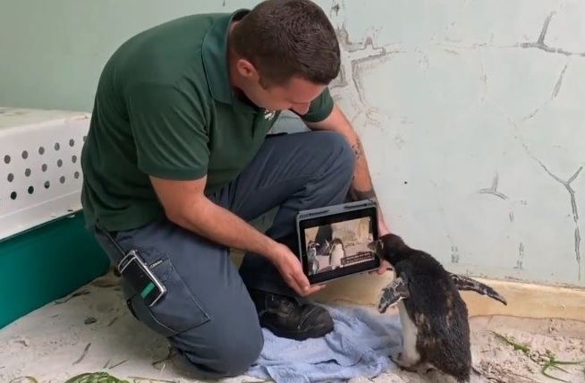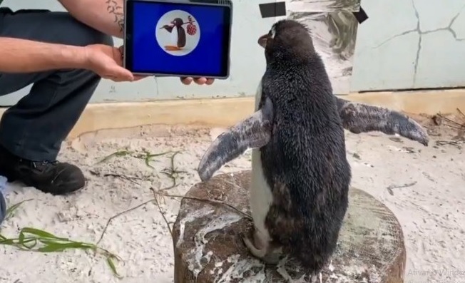 O médico veterinário explicou que foi oferecido ao pinguim muitas atividades. Entre elas, os profissionais compraram um iPad para mostrar a ele outras colônias de Rockhoppers, em zoológicos de todo o mundo. – Foto: Reprodução/Twitter/7NEWS/Adelaide - 7 de 8