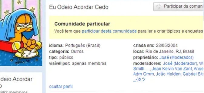 As comunidades eram, de fato, um dos grandes pontos fortes do Orkut. “Eu Odeio Acordar Cedo” era praticamente unânime, ultrapassando 6 milhões de participantes. Os espaços também permitiam a criação de fóruns para interação dos participantes – Foto: Internet/Reprodução/ND