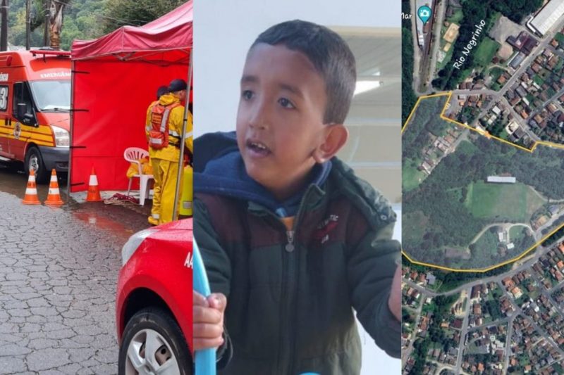 Outro caso que chamou atenção na região foi o do menino Ítalo Gonçalves, de 5 anos, que ficou desaparecido por dez dias até ser encontrado morto em Rio Negrinho. Os bombeiros fizeram buscas por terra e no rio até encontrarem o corpo da criança na água, a cerca de 25 metros de onde ele morava. A polícia descartou a possibilidade de crime. – Foto: Reprodução/ND - 5 de 17