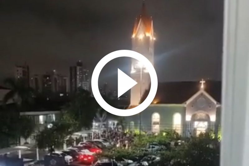 Ainda em outubro, a suposta invasão da Igreja da Paz viralizou na internet. O local, porém, não foi invadido durante uma manifestação de alunos e apoiadores a favor de uma professora do Ielusc, que foi demitida pela instituição. Na noite seguinte, novamente houve protesto no local, mas a favor da entidade. – Foto: Internet/Reprodução - 13 de 17