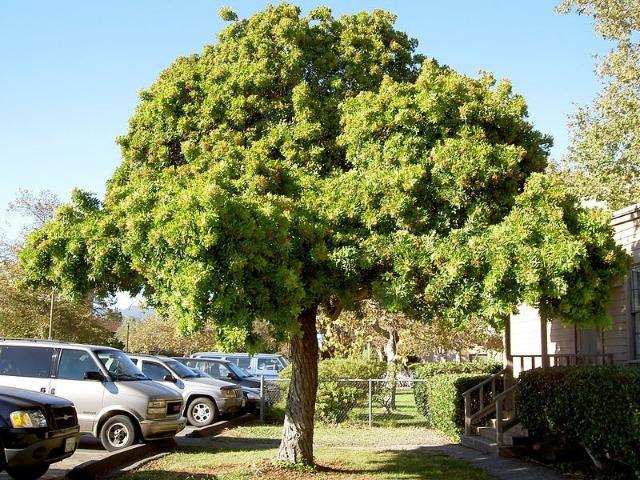 Sibipiruna (Caesalpinia peltophoroides) tem entre 8-16 m de altura, copa arredondada, moderadamente ampla, de até 6 m de diâmetro, com colorido verde muito vistoso. É uma das primeiras espécies a surgir em uma área degradada. Fruto: não-comestível – Foto: Internet/Divulgação ND