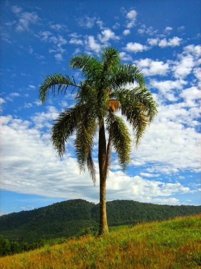 Jerivá (Syagrus romanzoffiana). Ocorre em quase todas as formações vegetais, principalmente na Mata Atlântica. Trata-se de um coqueiro e que, como o nome diz, produz uns coquinhos amarelinhos comestíveis. A sua forma de dispersão é por meio de animais que consomem seus frutos e dispersam suas sementes através das fezes. – Foto: Wikiaves/Divulgação ND