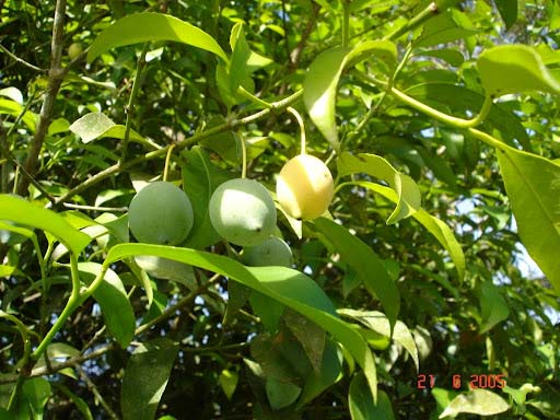 Bacupari (Rheedia gardneriana). Quando plantadas em áreas abertas geram muito mais frutos e iniciam a produção quando ainda bem jovens. Fruto: comestível. – Foto: Viveiro ipe bacupari/Divulgação ND