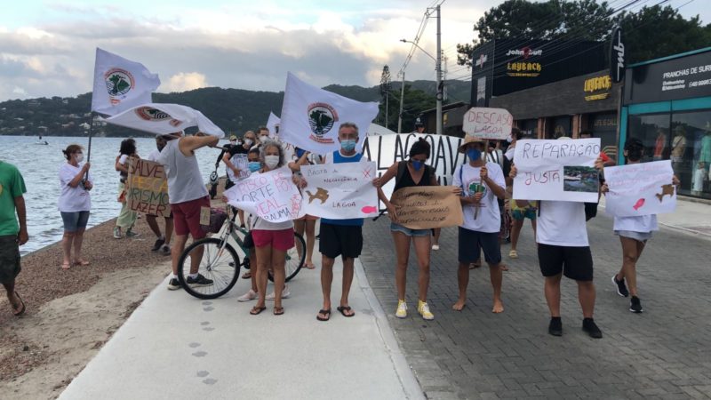 Moradores protestaram contra a situação na Lagoa da Conceição – Foto: Gabriela Milazeni/NDTV