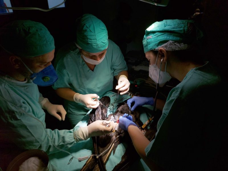 Segundo o veterinário Sandro Sandri, a cirurgia de celiotomia – incisão através da parede abdominal, que concede acesso à cavidade abdominal, foi orientada por alguns artigos de literatura específica.