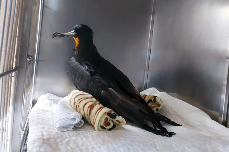 Fragata foi resgatada por uma embarcação pesqueira, no dia 26 de maio, e entregue na Unidade de Estabilização de Animais Marinhos – em Penha