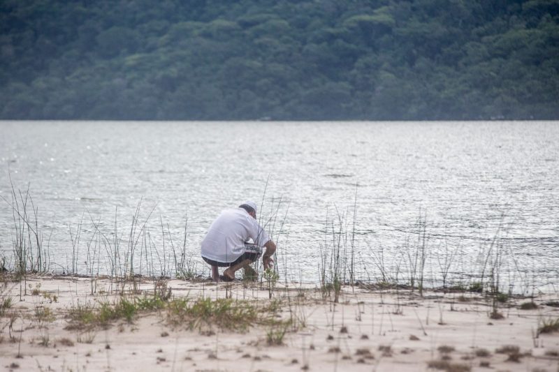 A lâmina d’água da Lagoa do Peri chegou a medir 1,56 cm segunda a Casan, mas nesta segunda (14), o nível apontava 2,18 cm – Foto: Anderson Coelho/ND - 3 de 14