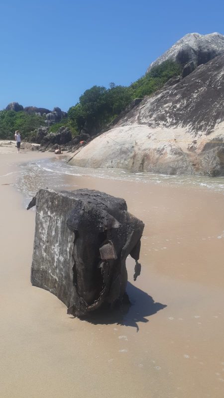 Um objeto que não faz parte do cenário natural de uma praia chamou a atenção dos moradores de São Francisco do Sul, no Litoral Norte de Santa Catarina, durante esse final de semana.