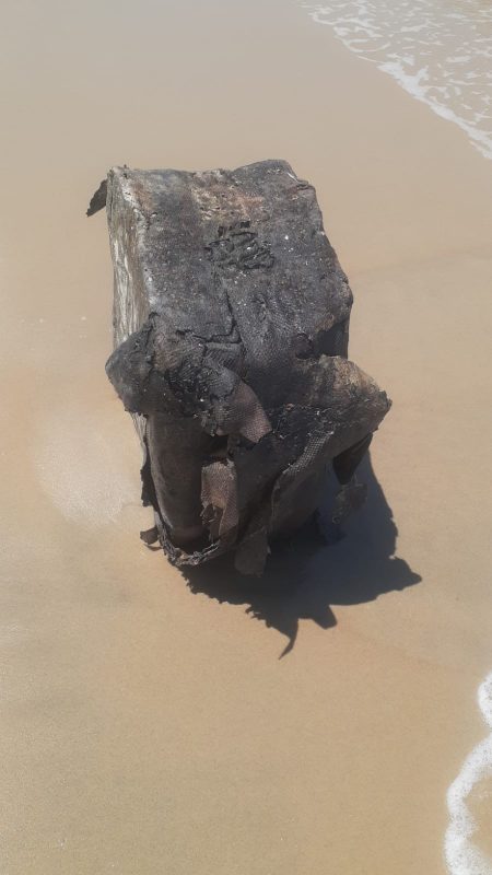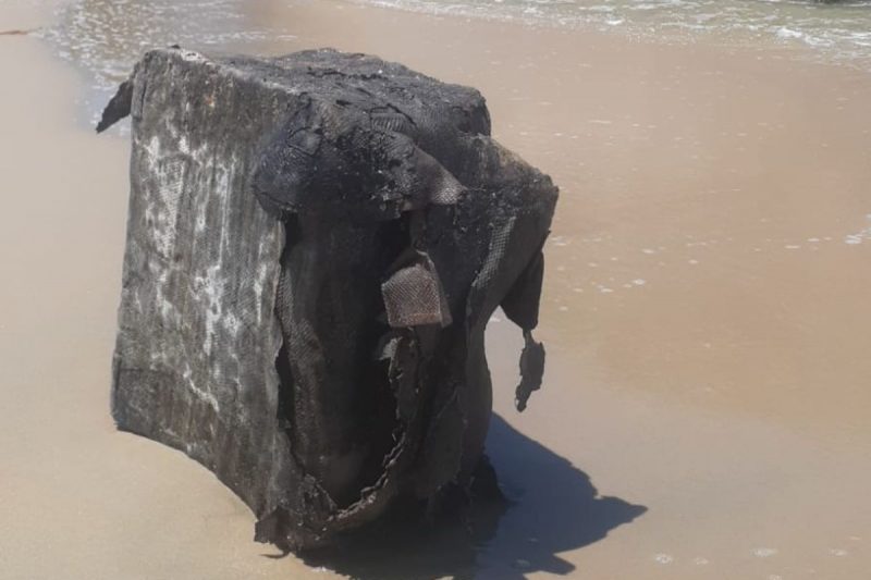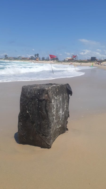 O item inusitado foi registrado no sábado (22), na Praia Grande, e se assemelha aos fardos de látex que circulavam em navios nazistas e que, recentemente, apareceram também em outras praias do Estado.