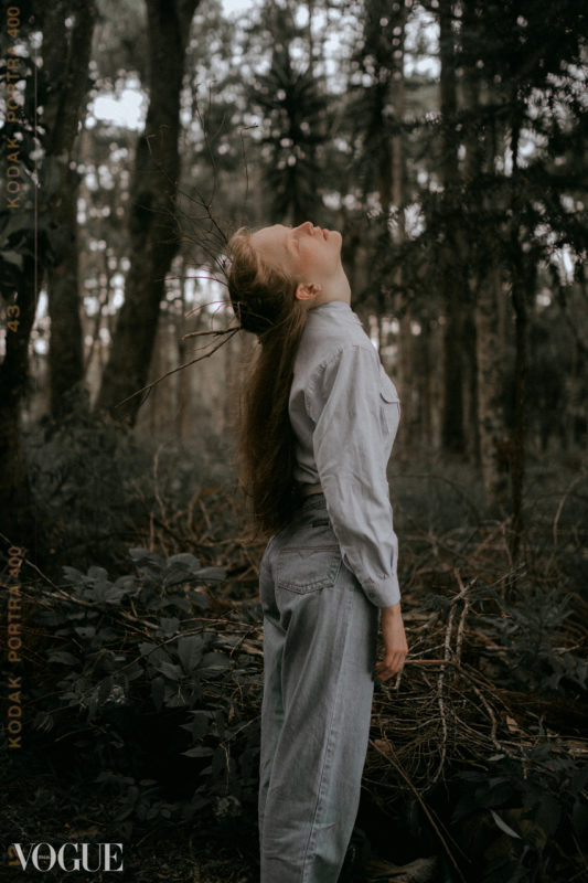 A imagem faz parte de um ensaio amplo, com foco na “liberdade em meio ao momento delicado que estamos passando”, explica Alexander. As fotos foram feitas em um ambiente de mata fechada, onde a modelo respira ar puro vindo da natureza.