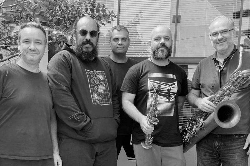 Quinteto formado pelos os saxifonistas Felipe Moritz e Fábio Mello, o baixista Trovão Rocha, o baterista Victor Bub e o guitarrista Gustavo Messina para a edição especial do projeto O Pássaro Vermelho, nesta sexta, no Teatro Armação – Foto: DivulgaçãoE para a sexta-feira, o projeto O Pássaro Vermelho convoca mais uma revoada sonora no Teatro Armação, na Praça XV de Novembro. E vai dar clima sim, pois a noite será de homenagens ao instrumentista brasileiro Moacir Santos (1926-2006).
