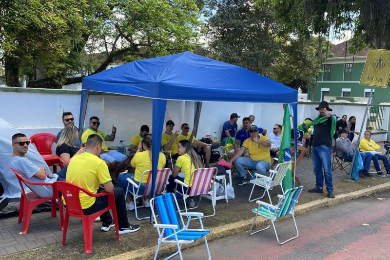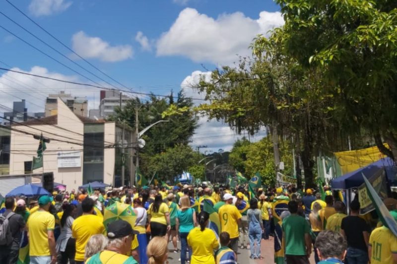 Após um fim de semana de protestos, manifestantes voltaram a se reunir em Joinville, no Norte de Santa Catarina, nesta segunda-feira (7). Vestidos de verde e amarelo, eles se concentram nas proximidades do 62º Batalhão de Infantaria, na região central da cidade.