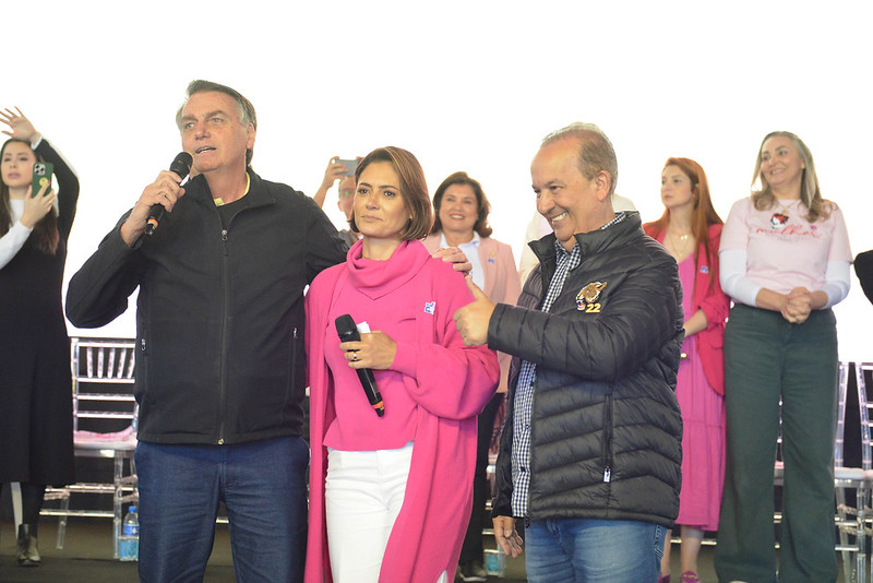 O ex-presidente falou por cerca de quatro minutos e logo depois foi alertado pela esposa que pediu sua retirada do encontro. “Agora ele vai ficar quietinho com o governador, né, Jorginho? Olhem para cá, meninas. Deixa ele sair que a gente começa, por isso que tinha que ter aparecido no telão”, disse Michelle.
