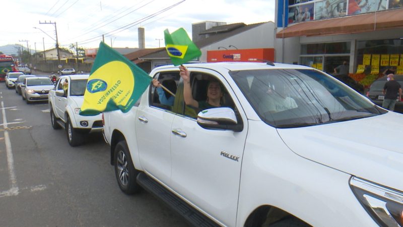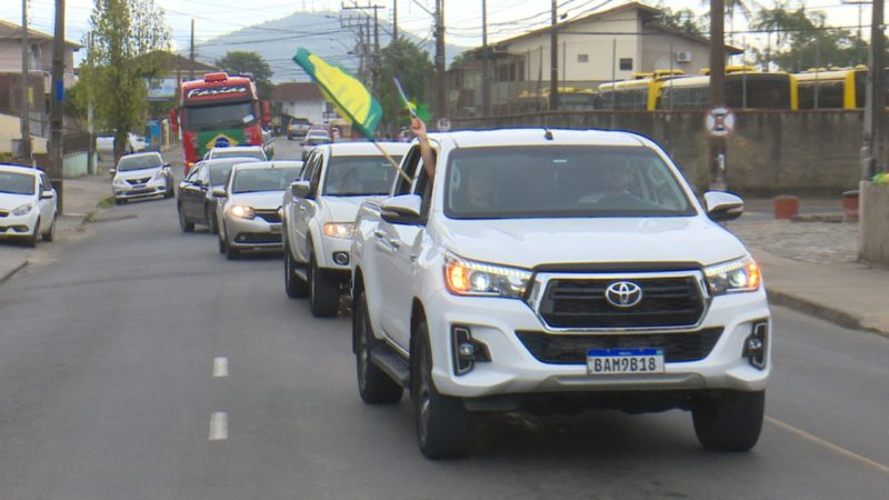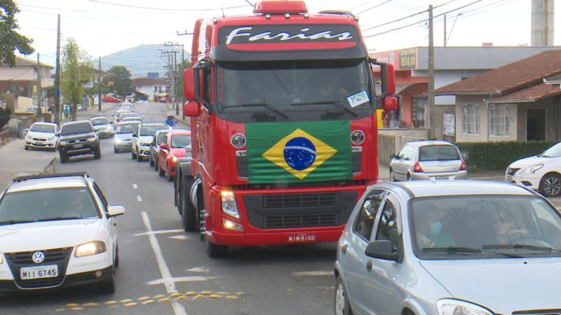 A manifestação, em defesa dos direitos constitucionais, ao trabalho e em apoio ao presidente continua durante a tarde. A carreata deve ser retomada às 14h nos bairros da zona Norte de Joinville.
