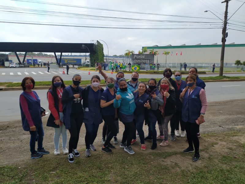 Enquanto o intervalo do trabalho rola, Juliana da Silva Tomé e as amigas aguardavam a chegada do presidente no Perini. “Aproveitamos para dar uma espiadinha no presidente durante o intervalo. A gente espera que ele pare, pelo que a gente vê, ele é bem atencioso”, diz.