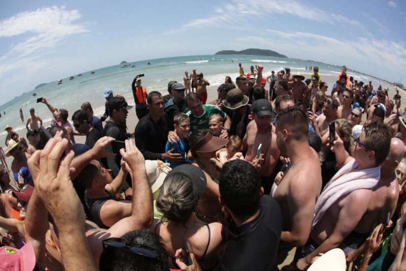 Depois do banho, porém, vestido com uma camisa da Chapecoense, Bolsonaro atendeu e tirou fotos com os apoiadores na faixa de areia.