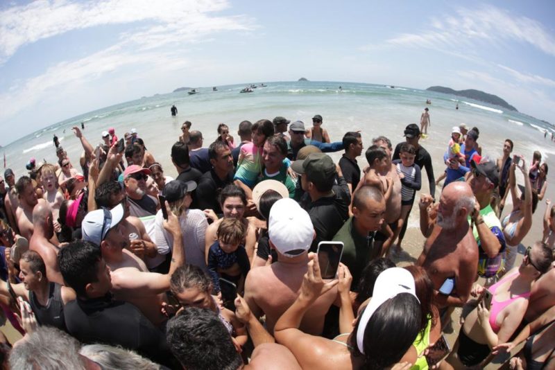 O trecho no qual o presidente passeou de jet ski está cercado por grades e, por isso, banhistas não podem entrar. Os simpatizantes assistiram ao passeio do lado de fora da área cercada.