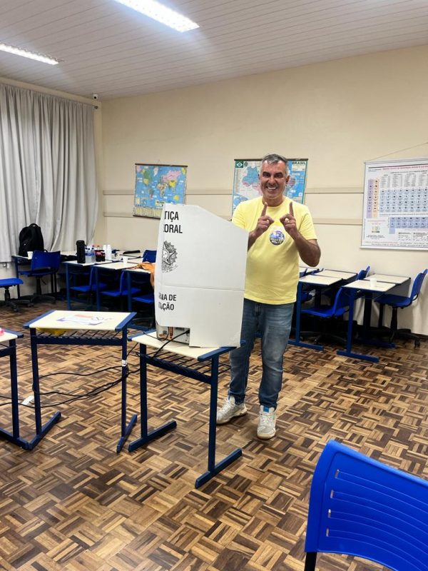 O candidato André Vechi votou por volta das 12h na Escola Alberto Pretti. – Foto: Divulgação/Reprodução/ND
