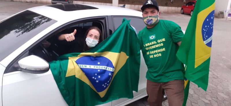 Mulher comprou uma bandeira para dar de presente a um amigo – Foto: Gladionor Ramos/NDTV Joinville