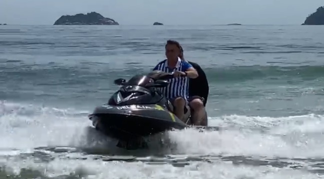 Durante a folga em São Francisco do Sul, o presidente usou a camisa do JEC que ganhou no almoço em Joinville. Ele também agradeceu a recepção dos catarinenses nas redes sociais – Foto: Redes sociais/Divulgação/ND - 14 de 23