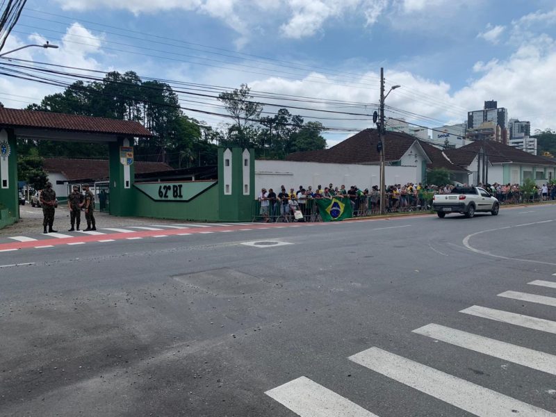 Depois, o presidente chegou a Joinville, onde pousou no 62º Batalhão de Infantaria – Foto: Redes sociais/Divulgação/ND - 4 de 23