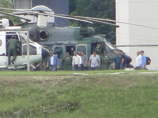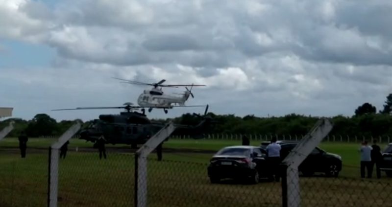 O presidente Jair Bolsonaro almoçou no Forte e, no início da tarde, foi de carro até o aeroclube de São Francisco do Sul. Entrou no helicóptero presidencial e foi para Navegantes, onde embarcará no meio da tarde rumo a Brasília – Foto: reprodução de vídeo