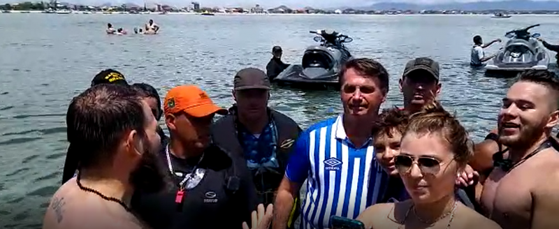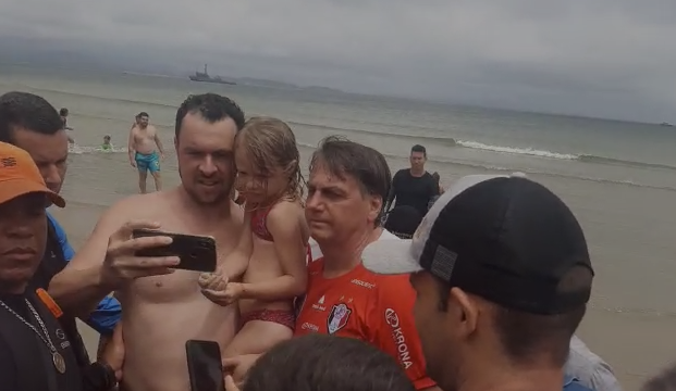 Na manhã desta quarta-feira (23), o presidente passeou pela praia da Enseada, onde tirou fotos com apoiadores enquanto vestia a camisa do Avaí – Foto: Taís Fiori/Divulgação/ND - 22 de 23