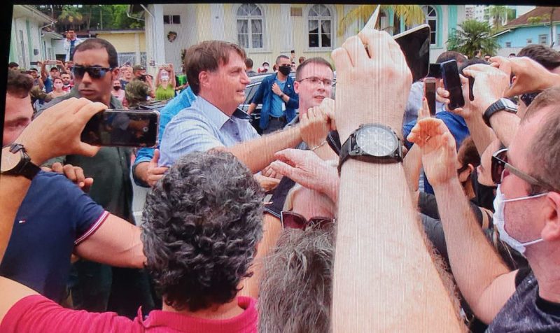 Em São Francisco do Sul, o presidente falou que não vai tomar a vacina contra a Covid-19 pois, segundo ele, está imunizado por já ter contraído a doença – Foto: André Rhode/Record TV/Reprodução - 16 de 23