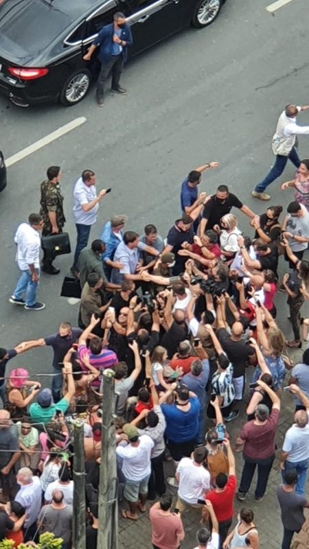 Aos gritos de “mito”, várias pessoas se reuniram para acompanhar a chegada do presidente a Joinville – Foto: Alphonsus Stofelli/NDTV - 8 de 23