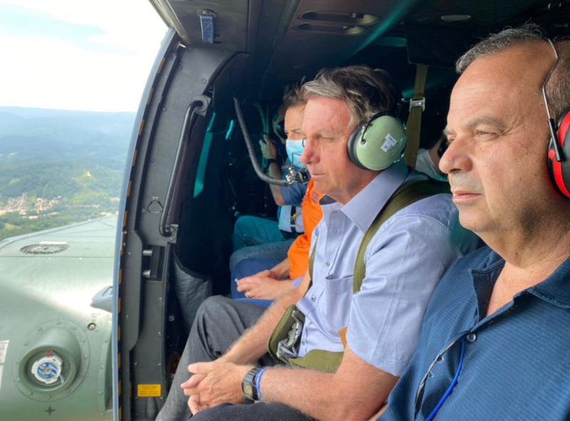 Bolsonaro sobrevoou o Alto Vale do Itajaí acompanhado do ministro do Desenvolvimento Regional, Rogério Marinho, que decretou estado de calamidade pública em cidades da região – Foto: Redes sociais/Divulgação/ND - 3 de 23