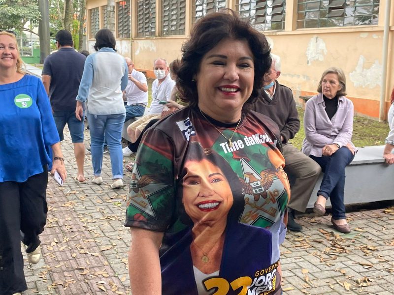 Já Marilisa Boehm votou na Escola Estadual Básica Professor Germano Timm, bairro América, por volta das 10 horas. Chegou acompanhada do marido e de assessores e enfrentou fila para votar.