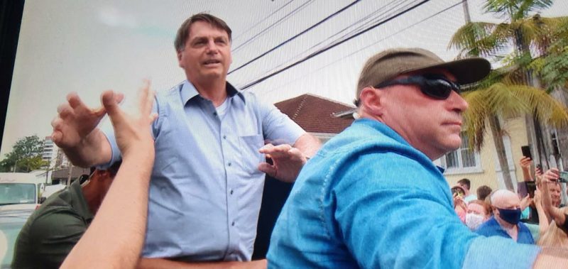 Sem máscara, Bolsonaro foi recepcionado por várias pessoas ao chegar a Joinville – Foto: Alphonsus Stofelli/NDTV