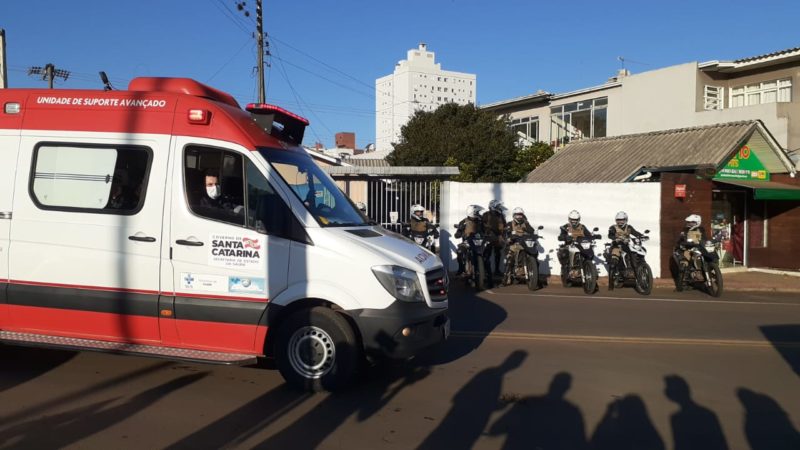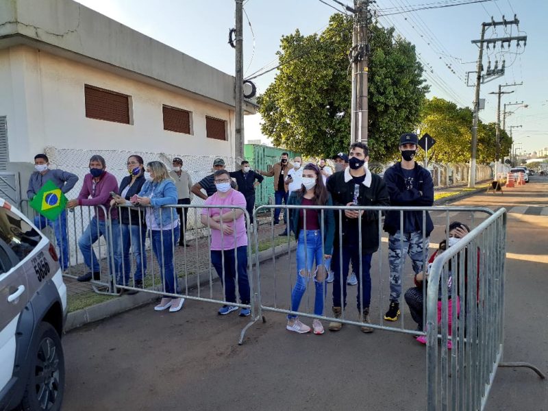 Bolsonaro estava acompanhado do ministro Tarcísio Gomes de Freitas da Infraestrutura, do prefeito de Chapecó João Rodrigues, da vice-governadora Daniela Reinehr, do presidente da Caixa Econômica Federal Pedro Duarte Guimarães, dos senadores Jorginho Melo, Esperidião Amin e Luis Carlos Heinze, do secretário da Agricultura de SC Altair Silva, dos deputados federais Caroline de Toni, Eduardo Bolsonaro, Guga Peixoto, José Medeiros e Rodrigo Coelho, além de parlamentares estaduais e de outras lideranças.
