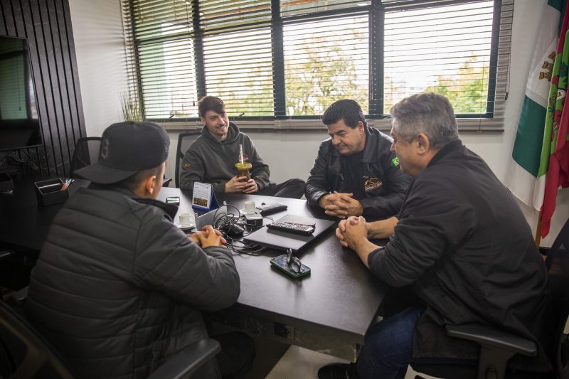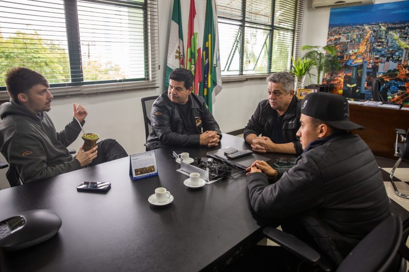 Renan, de 25 anos, está visitando a região, acompanhado do empresário Emílio Dalçoquio Neto, do ramo de transportes. A deputada federal Caroline De Toni acompanhou a vista no gabinete do prefeito de Chapecó. - 4 de 5