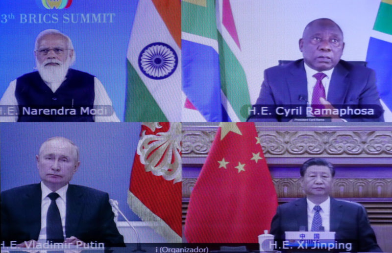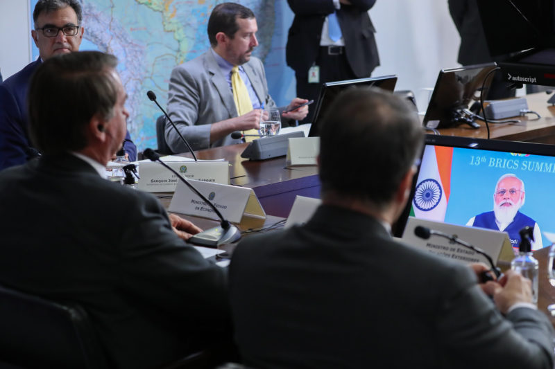 Líderes do grupo Brics, formado por Brasil, Rússia, Índia, China e África do Sul, realizaram nesta quinta-feira (9) uma reunião virtual. Em suas falas, ressaltaram a importância do mecanismo e também defenderam o multilateralismo. – Foto: Marcos Correa/PR/ND - 2 de 9