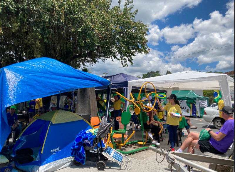 Manifestação também ocorre em frente ao Quartel do Exército em Blumenau na manhã deste sábado. Algumas pessoas estão acampando em frente ao Quartel, mas a rua não está bloqueada. Em Rio do Sul, alguns manifestantes permanecem em frente à loja Havan, mas também nenhum bloqueio na pista.