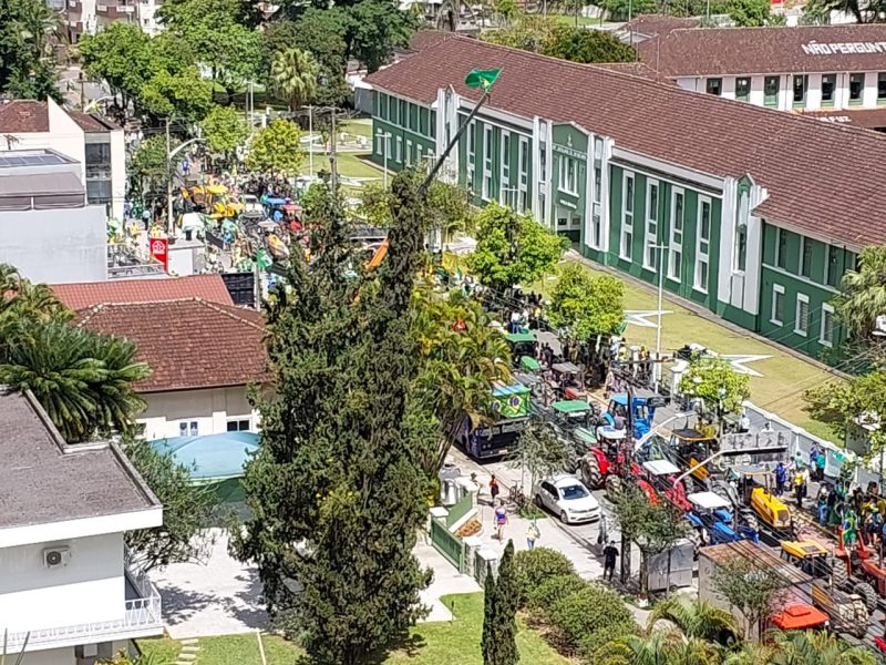 Os manifestantes continuam tomando as ruas de algumas cidades catarinenses neste sábado (5). Em Joinville, no Norte de Santa Catarina, o protesto contou com tratores, que desfilaram pelas ruas centrais da cidade, como mostram os vídeos e fotos abaixo. Buzinas, execução do Hino Nacional, bandeiras e gritos de protesto resumem a mobilização que insiste em prosseguir. O trânsito na frente do 62º BI está trancado. Os motoristas precisam desviar.