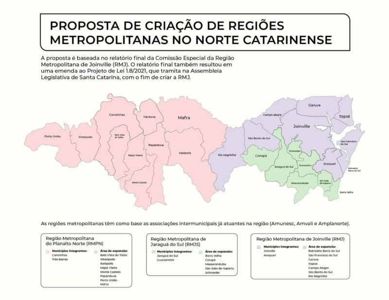 A emenda acatada pelos deputados estaduais confirma a criação não só da Região Metropolitana de Joinville, mas também a de Jaraguá do Sul e a de Canoinhas.