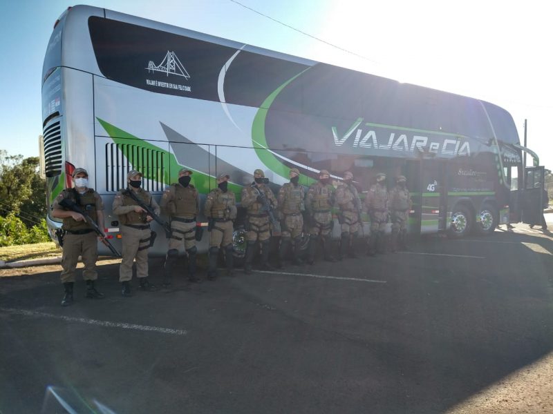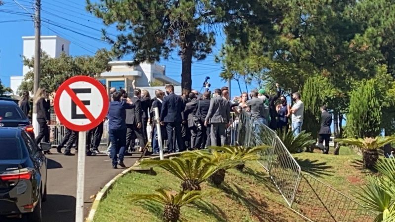 Um forte esquema de segurança foi estruturado para escoltar o presidente, até o Centro de Eventos de Chapecó. – Foto: Julia de Araujo/ND