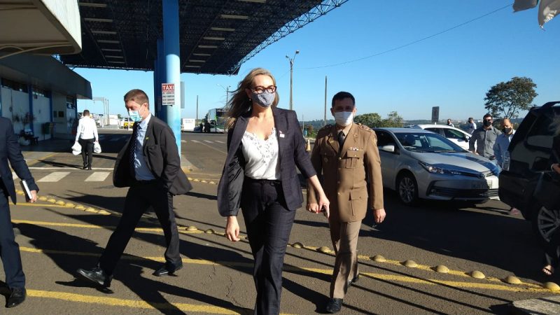 A Governadora de Santa Catarina, Daniela Reinehr chegou ao aeroporto 10 minutos antes do presidente. – Foto: Julia de Araujo/ND