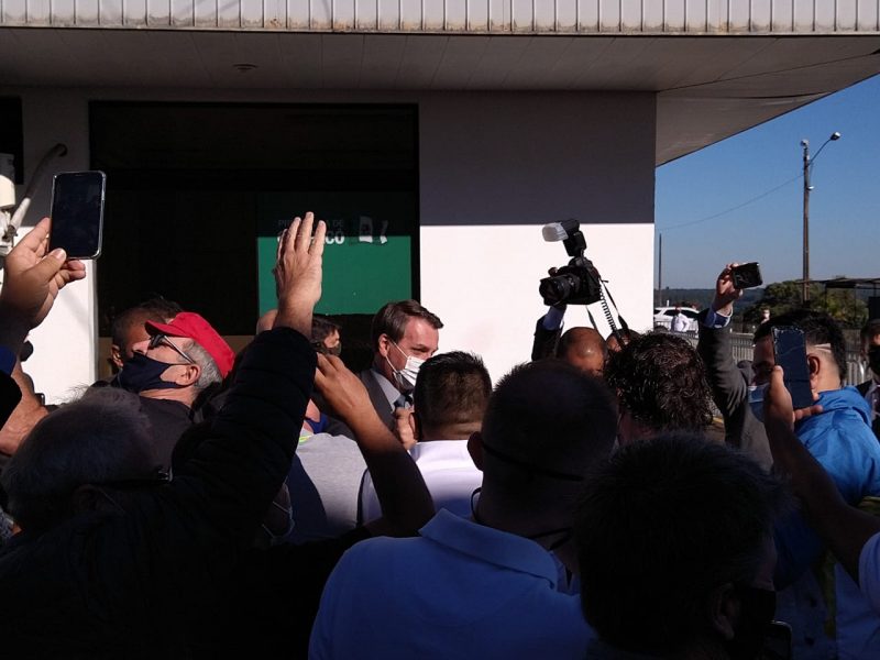 O presidente Jair Bolsonaro cumprimentou alguns apoiadores que estavam esperando sua chegada. Ele tirou fotos e conversou com algumas pessoas. – Foto: Julia de Araujo/ND