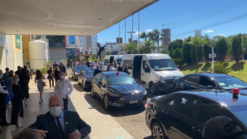 Logo após, a comitiva se deslocou diretamente para o Centro de Eventos Plínio Arlindo de Nes. – Foto: William Ricardo/ND