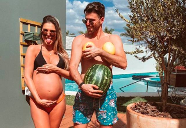 Aryane Steinkopf e Beto Malfacini – O casal que iniciou o romance com um beijo tímido provou que era para valer! Beto e Aryane se conheceram durante a sexta edição de A Fazenda. A paquera entre os pombinhos continuou fora do confinamento, até que deu em casamento! Hoje, eles são pais de Aarão – Foto: Divulgação/Redes Sociais - 3 de 9