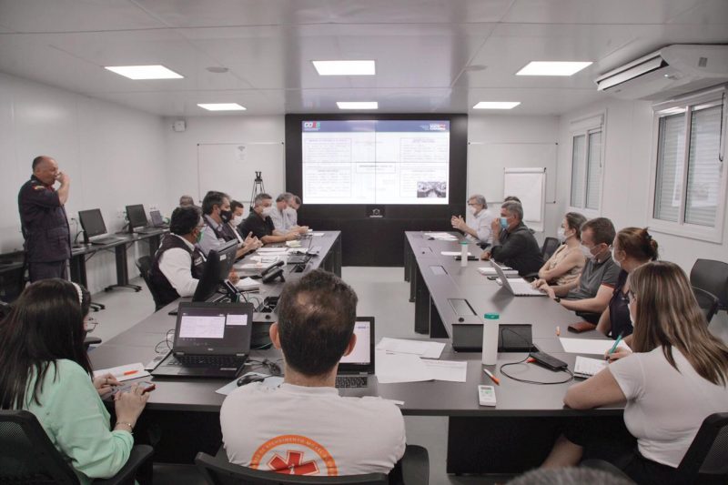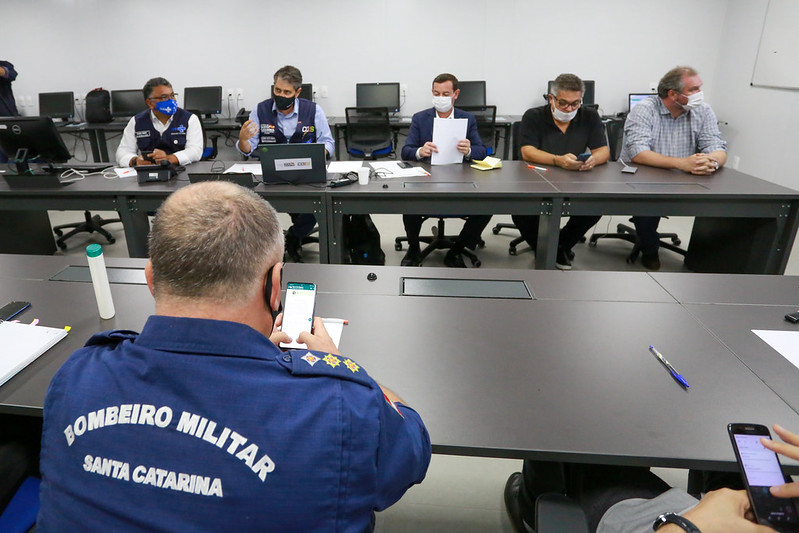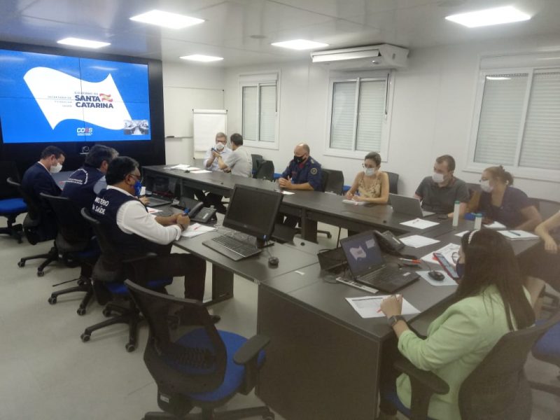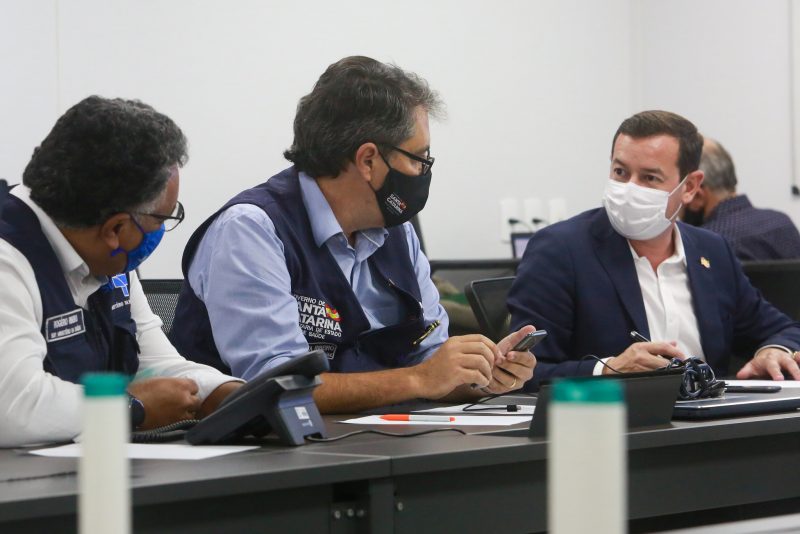 Reunião no Centro Integrado de Gerenciamento de Riscos e Desastres. Segundo o secretário de Saúde de SC, disse que a prioridade é abrir leitos e otimizar processos – Foto: Leandro Schmidt/ND - 6 de 7