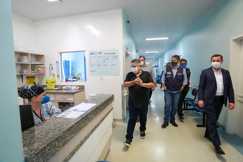 Comitiva visitou o Hospital Regional do Oeste no fim da manhã desta segunda – Foto: Julio Cavalheiro/Secom/ND - 5 de 7