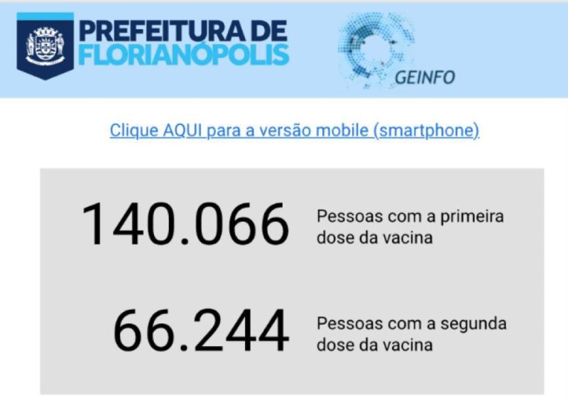 O prefeito Gean Loureiro (DEM) usou sua rede social para informar que Florianópolis chegou à marca e 140 mil pessoas vacinadas com ao menos uma dose, o que corresponde a cerca de 35% da população adulta apta a receber a vacina.