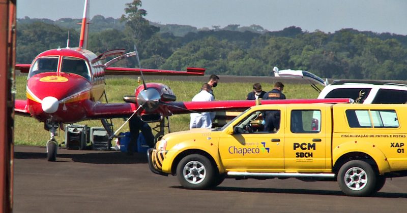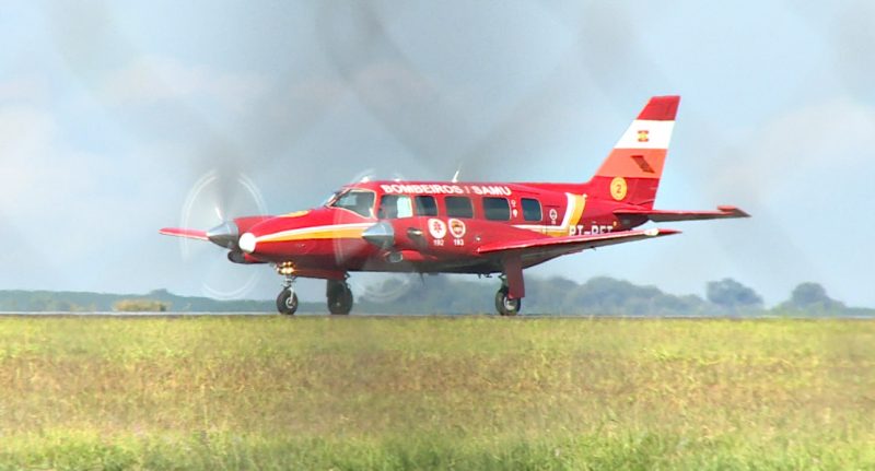 A aeronave Arcanjo 02, do Corpo de Bombeiros Militar de Santa Catarina pousou em Vitória (ES), com o primeiro paciente com Covid-19 transferido de Santa Catarina na tarde de quarta-feira (3). Ele morreu na mesma semana – Foto: CBMSC/Divulgação/ND